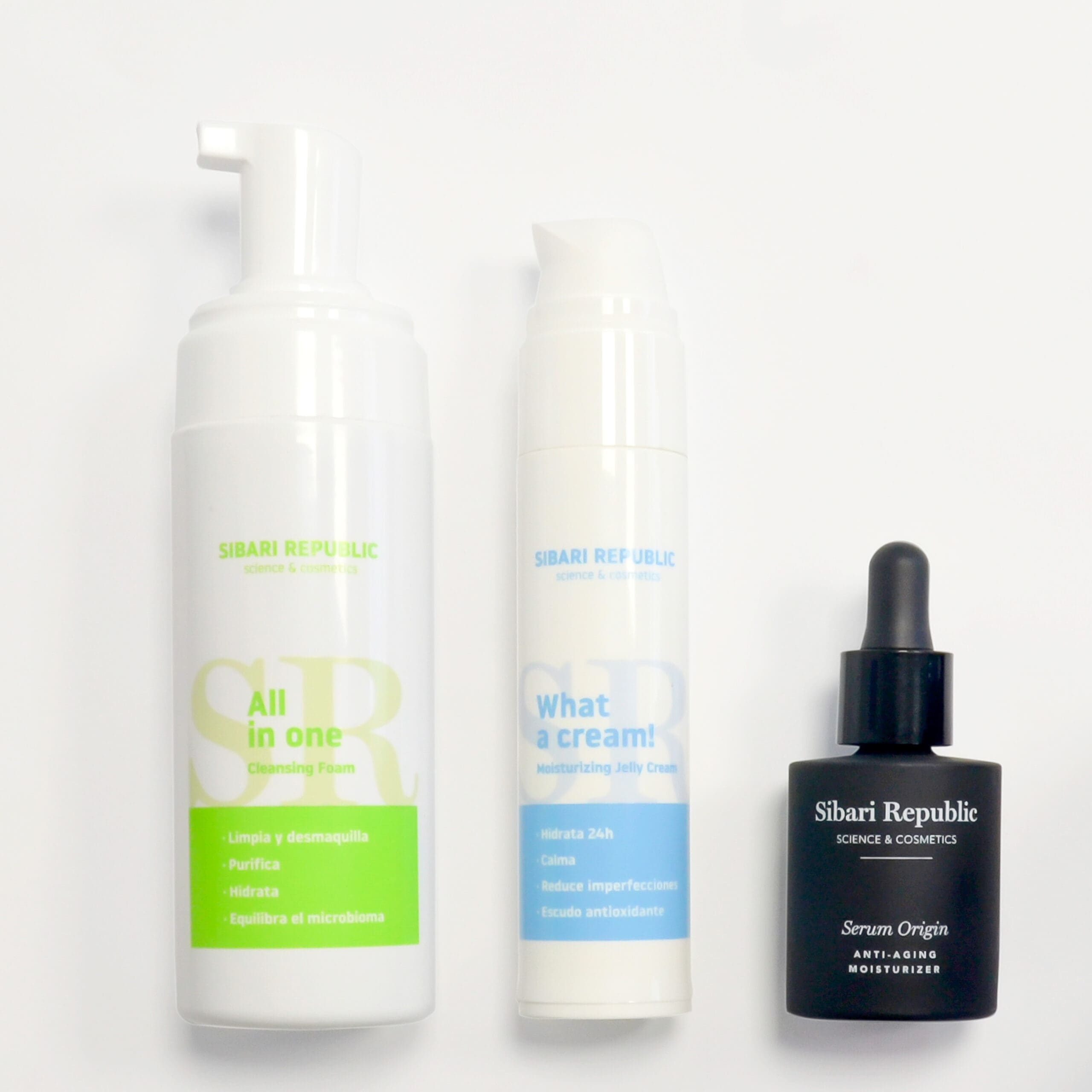 - Sérum Origin: Formulado con ácido hialurónico de dos diferentes pesos moleculares actúa desde las capas profundas de la piel aportando un efecto reparador e hidratante intensivo que además corrige líneas de expresión, signos de fatiga, arrugas y surcos.